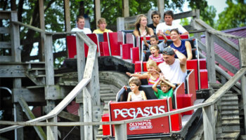 Not to be outdone by his brother Hades, Zeus ascends one height after another, twisting and turning over 2,700 feet of track. Racing through a vast forest, Zeus climbs a mind-numbing 90 feet and then plunges 60 MPH down with an 85 foot drop! This is one of those thrill rides you’ll never want to leave.