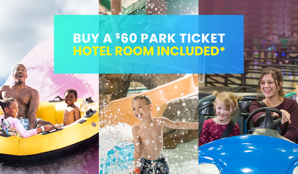 For every $60 Ticket purchased, receive one 2 Queen Beds Themed Room (2 to 5 Minutes from the Park). America’s Tallest Water Slide & The Nation’s first upside down Slidewheel Included! WE HAVE IT ALL! The Only Water Park in Wisconsin Dells with Go-Karts, Roller-Coasters, Waterslides and So much More!